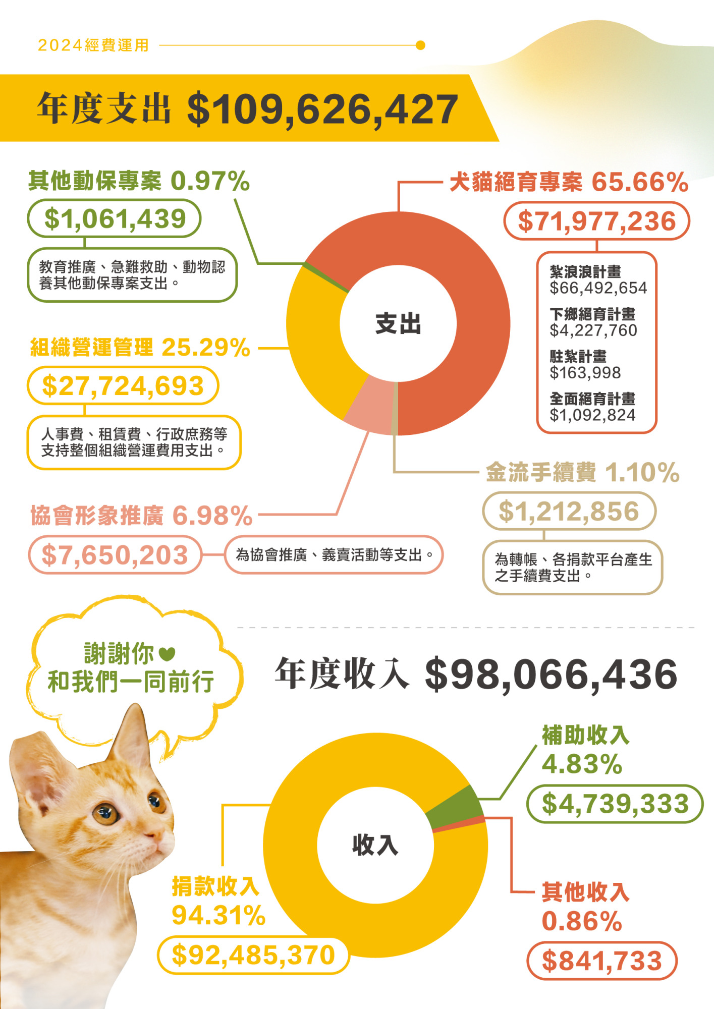 財務概要 在解決流浪犬貓問題的路途中,台灣之心並不孤單! 協會超過九成的收入來自善心民眾及企業慷慨解囊。我們珍惜每個人的溫暖心意,並妥善運用每一分資源。 台灣之心每年委託會計師事務所審核與製作財務簽核報告,並公開於官方網站; 我們更是全台第二個加入公益團體自律聯盟的動保團體。在財務責信的實踐上,台灣之心相當重視。 徵信列表 報表/徵信類別 (field_tax_report) 會計師查核報告書 歷年報告 勸募專案徵信 【勸募字號1131364803】2025 「援」來「救」是你,流浪動物醫助計畫-114急難(執行成果報告) 【勸募字號1131364803】2025 「援」來「救」是你,流浪動物醫助計畫-114急難(使用情形成果報告) 【勸募字號1131364394】2025 用溫柔力量為牠們發聲-114紮浪(執行成果報告) 【勸募字號1131364394】2025 用溫柔力量為牠們發聲-114紮浪(使用情形成果報告) 【勸募字號1121364575】2024 用溫柔力量為牠們發聲-113紮浪(使用情形成果報告) 【勸募字號1121364575】2024 用溫柔力量為牠們發聲-113紮浪(執行成果報告) 【勸募字號1121364584】2024 「援」來「救」是你,流浪動物醫助計畫-113急難(使用情形成果報告) 【勸募字號1121364584】2024 「援」來「救」是你,流浪動物醫助計畫-113急難(執行成果報告) 【勸募字號1111363681】2023 「援」來「救」是你,流浪動物醫助計畫-112急難(執行成果報告) 【勸募字號1111363681】2023 「援」來「救」是你,流浪動物醫助計畫-112急難(使用情形成果報告) 【勸募字號1111363680】2023 用溫柔力量為牠們發聲-112紮浪(執行成果報告) 【勸募字號1111363680】2023 用溫柔力量為牠們發聲-112紮浪(使用情形成果報告) 【勸募字號1101364649】2022 「援」來「救」是你,流浪動物醫助計畫-111急難_(使用情形成果報告) 【勸募字號1101364649】2022 「援」來「救」是你,流浪動物醫助計畫-111急難(執行成果報告) 【勸募字號1101364036】2022 用溫柔力量為牠們發聲-111紮浪(執行成果報告) 【勸募字號1101364036】2022 用溫柔力量為牠們發聲-111紮浪(使用情形成果報告)